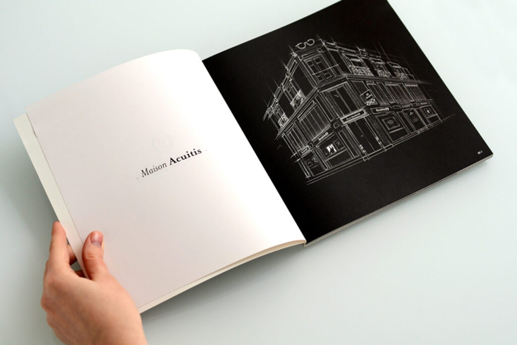 L’écriture d’une marque qui se construit à travers un catalogue, réalisé tous les 2 ans, réunissant l’histoire de la marque, l’offre, les services et évidemment les produits. Une identité essentiellement construite à sa genèse sur le N&B et qui accueillera au fur et à mesure des éditions de la couleur, laissant plus de place aux produits.