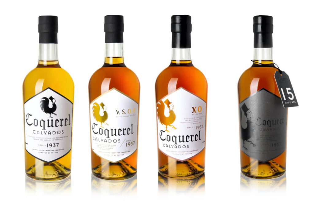 Pour Coquerel Calvados, nous avons réalisé un travail global de modernisation de la marque et du Calvados en particulier, tout en conservant son patrimoine afin de toucher un consommateur plus jeune, sans perdre l’actuel. Ce travail appliqué au produit se traduit par une nouvelle bouteille, un nouveau design d’étiquette sur la globalité de la gamme et sur la création de nouveaux produits pour tous les marchés.