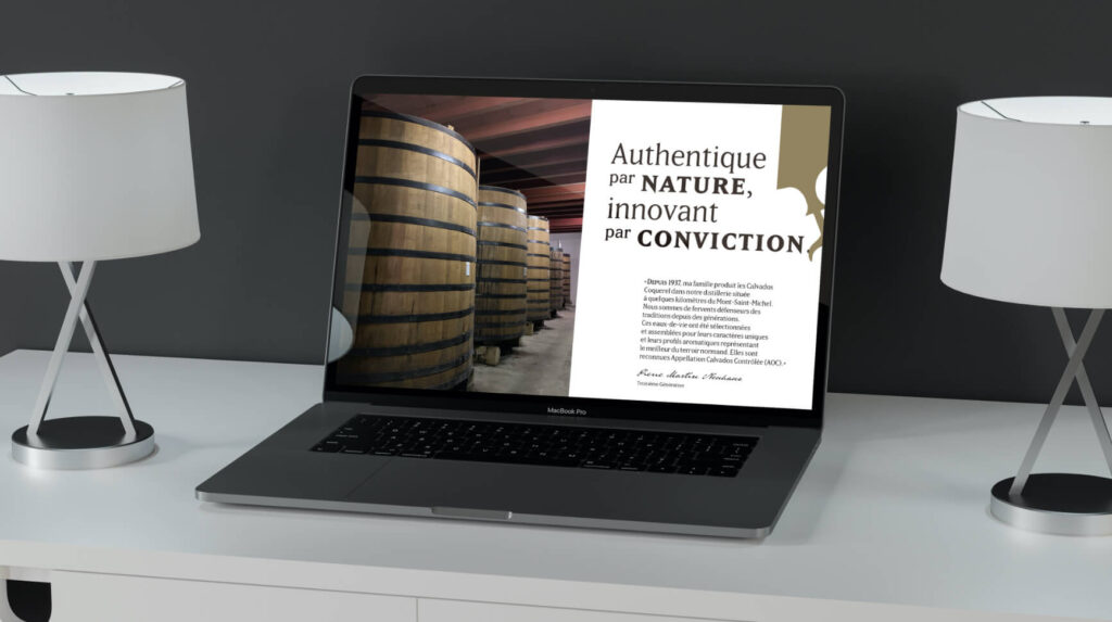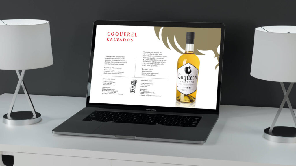 Conception d’une présentation B to B pour Coquerel Calvados qui synthétise tout le savoir faire de son créateur.