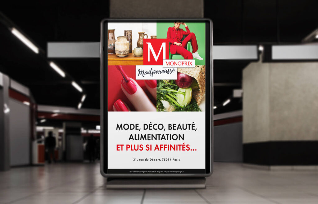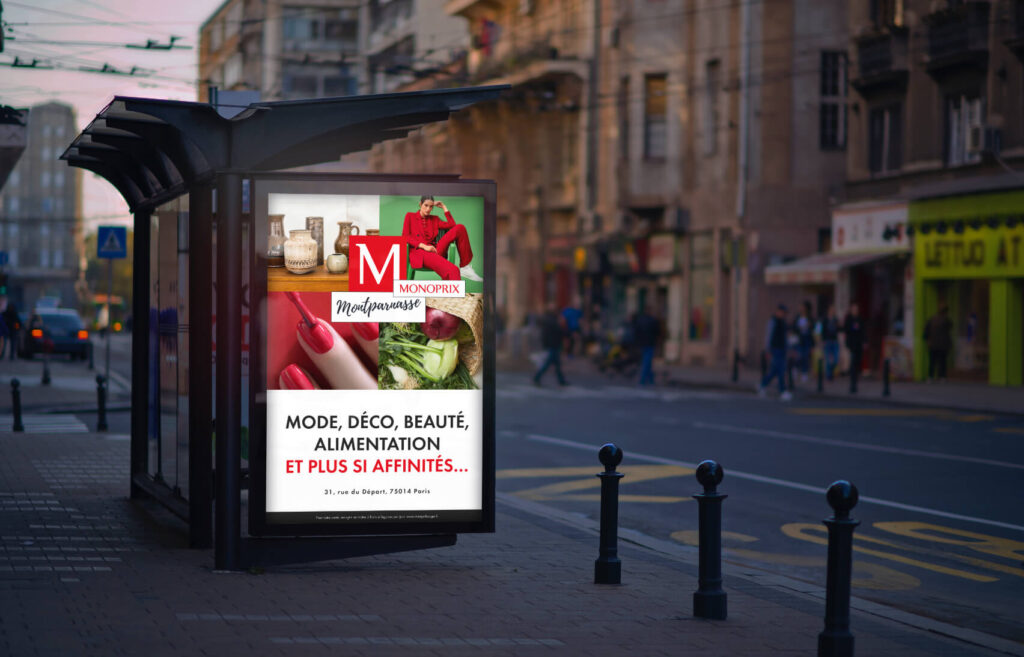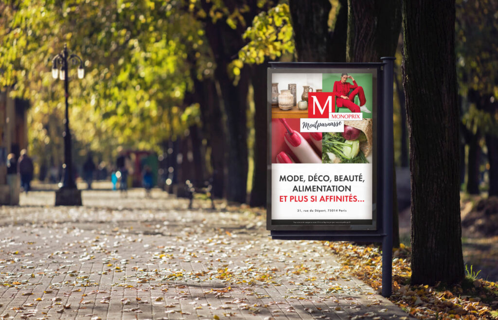 Une campagne d’affichage géolocalisée, réalisée en 48h, a permis de rappeler aux habitants et entreprises présentent dans le secteur que le magasin Monoprix Montparnasse Bienvenue avait rouvert avec une offre globale. Accompagnée par une animation de street marketing, cette opération a marqué le lancement d’une campagne digitale elle aussi géolocalisée.